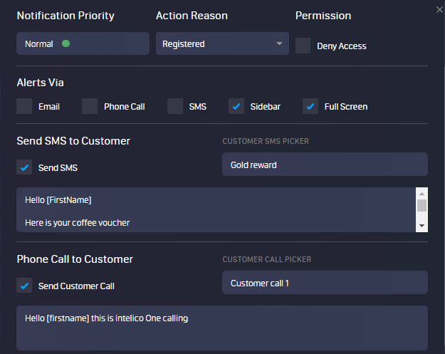 Create User SMS, Customer SMS, User or Customer Email and even User or Customer voice messages.